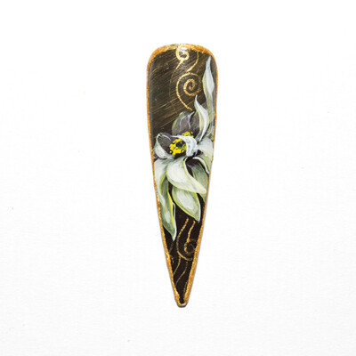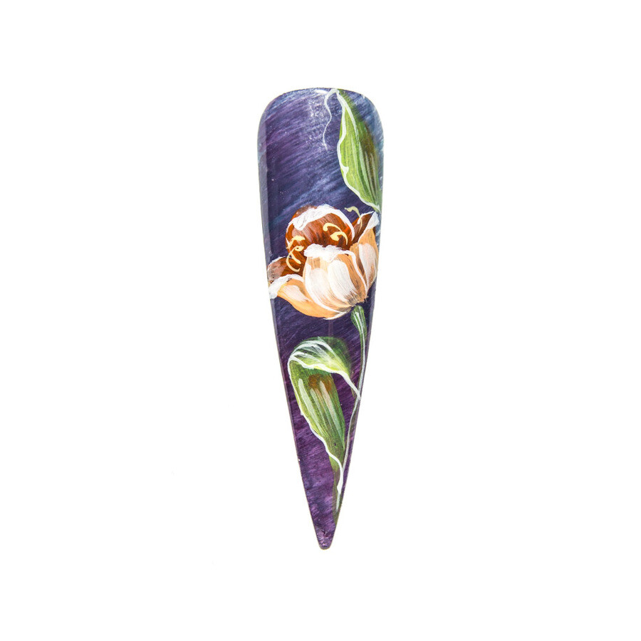 Юлия Билей адаптировала эту технику для работы с плоской кистью и применения на ногтях клиентов.