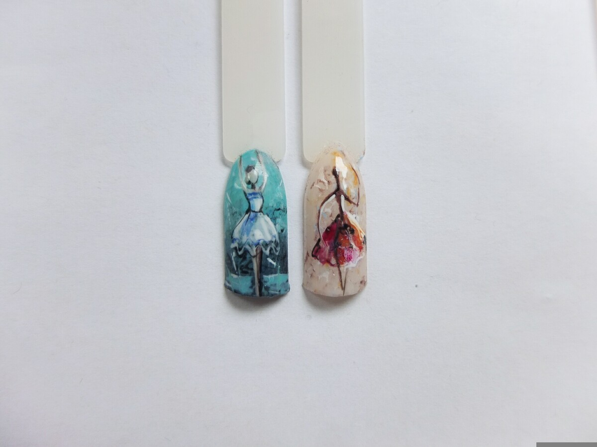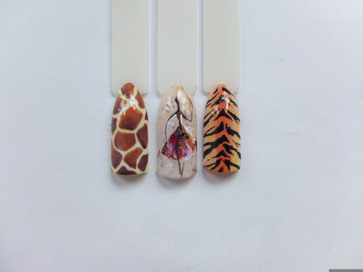 - Африканская балерина. Поговорим о большом потенциале этнических мотивов в летних дизайнах. Выполним его с орнаментами, этническими рисунками или животными принтами. Имитируем масляную технику.
