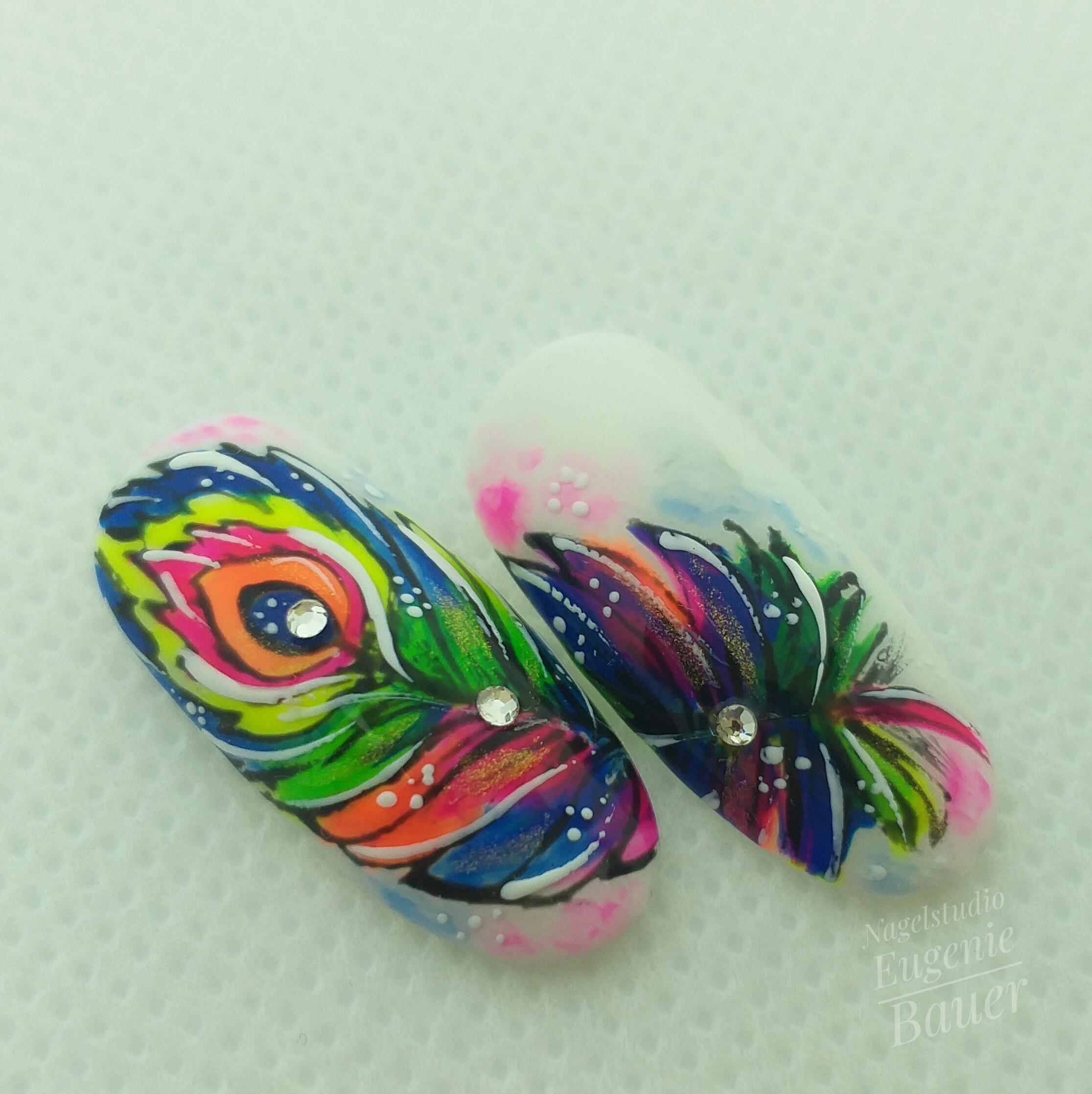 - гель-лаки: неоновые розовый, желтый, зелёный, синий.