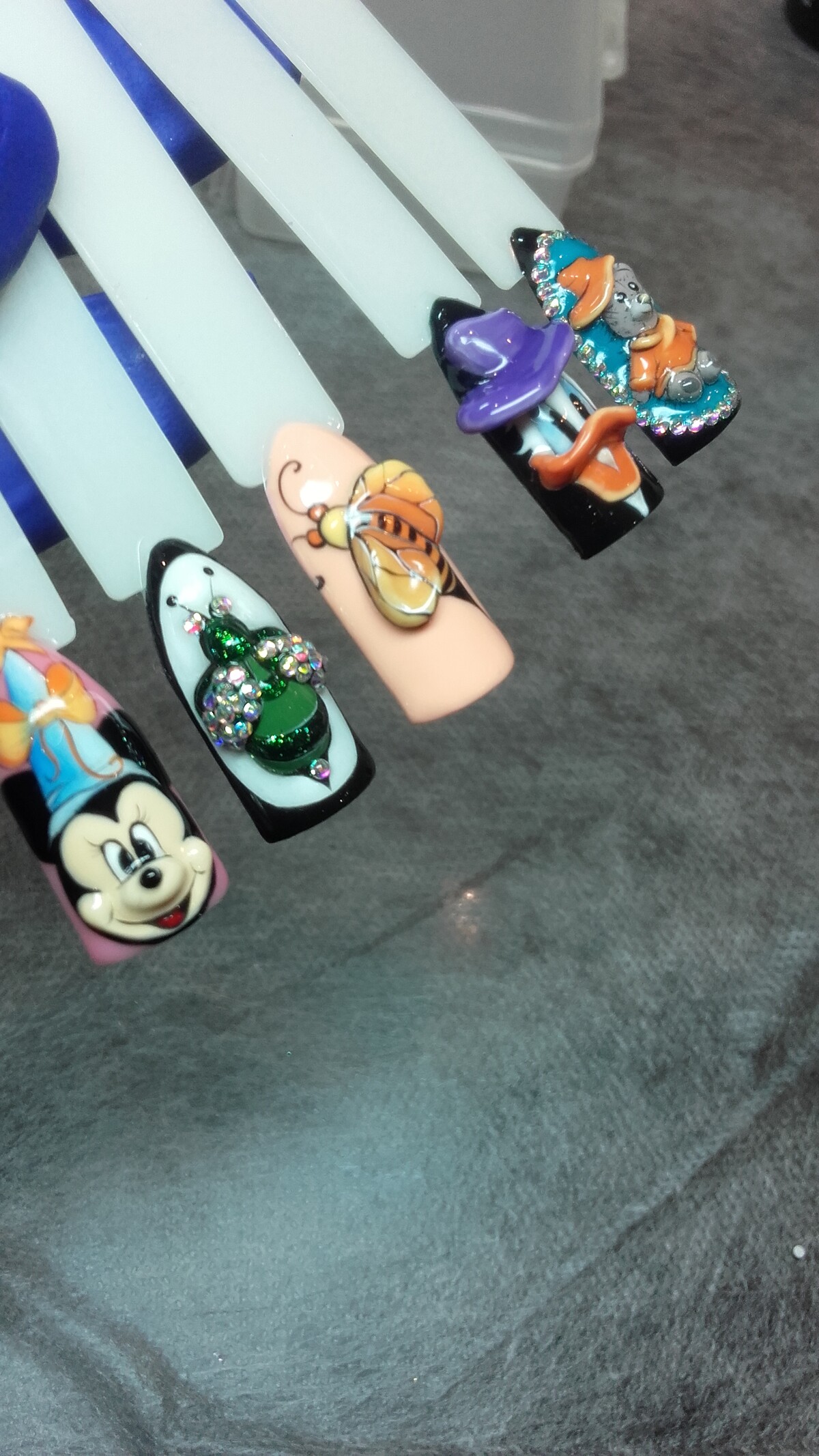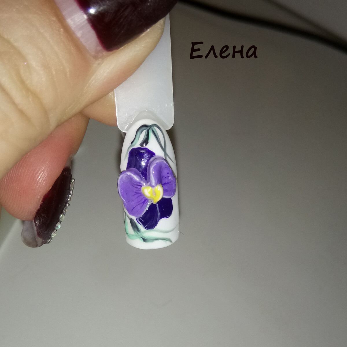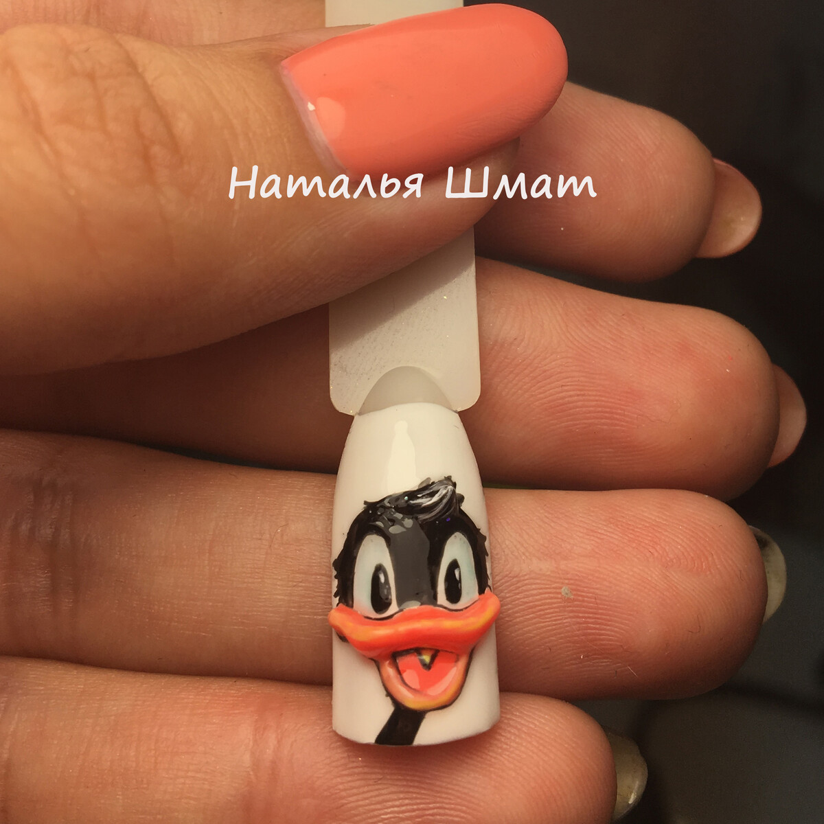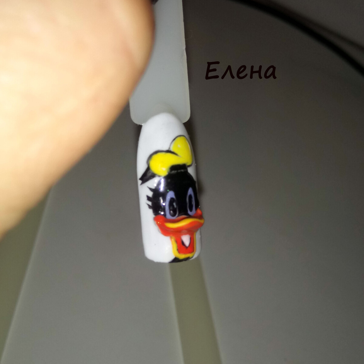 - Практическая отработка на типсах: фиалка, Дональд Дак.